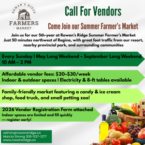 Come join the Rowan’s Ridge family and escape the hustle and bustle of city life. We look forward to spending our Saskatchewan summer with you!
